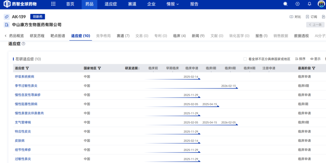 全球首创双抗登场:康方生物的AK139是全球首个靶向IL-4Rα/ST2的双特异性抗体。ST2是IL-33的受体,涉及组织损伤后的炎症反应。这意味着,AK139不仅能抑制2型炎症,还能修复组织损伤——这对于哮喘、COPD这类既有炎症又有组织重塑的疾病,具有巨大的临床价值。